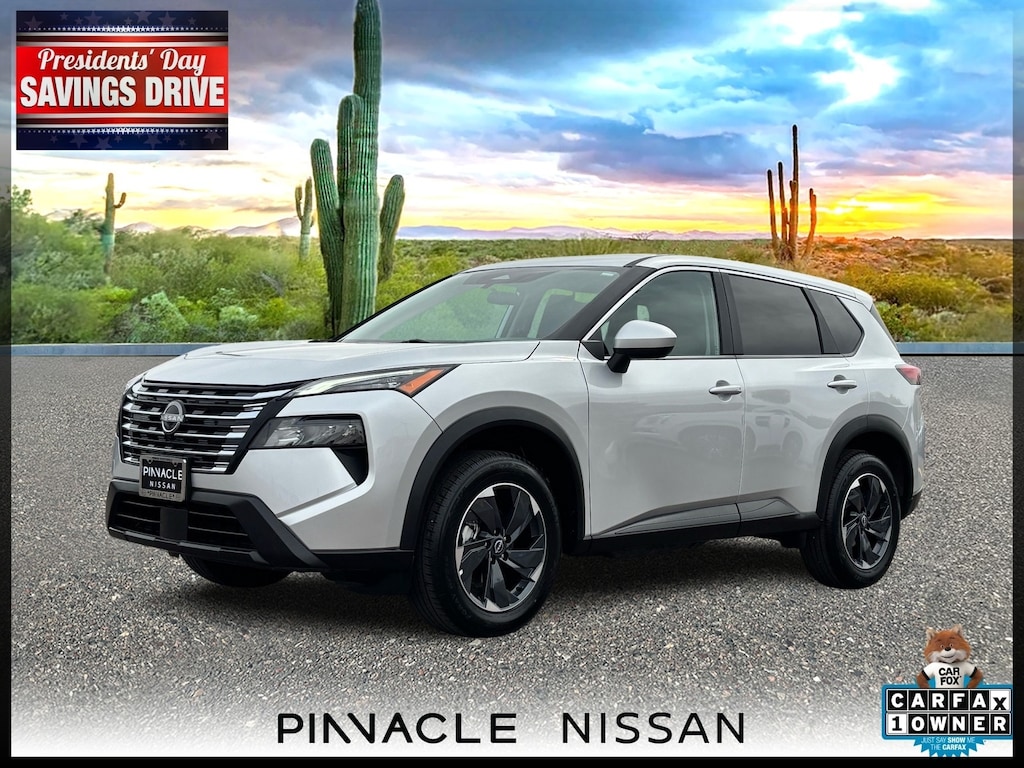 This Brilliant Silver Metallic 2024 Nissan Rogue SV AWD is a perfect blend of fuel efficiency, modern technology, and confident all-wheel-drive performance. With a Clean CARFAX, one previous owner, and miles well below market average, this Rogue offers outstanding value for Arizona drivers looking for a dependable, late-model SUV.